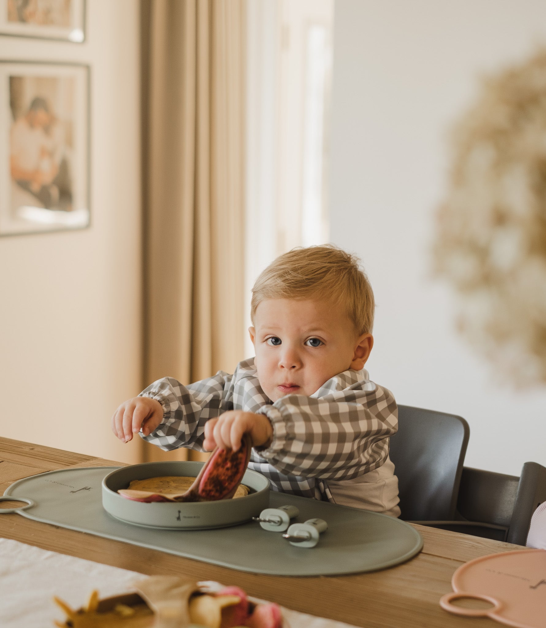Le bavoir manches longues Micasso & Co a été spécialement conçu pour répondre aux besoins des jeunes enfants lors des repas. Avec sa poche astucieuse placée à la bonne hauteur, il capture les miettes et aliments tombés, gardant bébé propre pendant chaque repas.